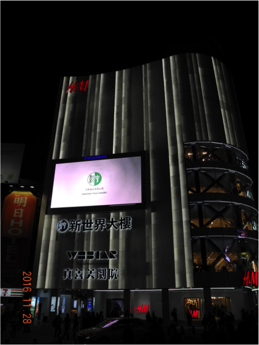中影LED位於中華路、衡陽路、成都路、漢中街交叉口,捷運西門站出口和40多條公車路線,為台北市交通最繁忙的路段。 一出捷運站就能立刻看到,感受畫面所帶來的視聽震撼 !